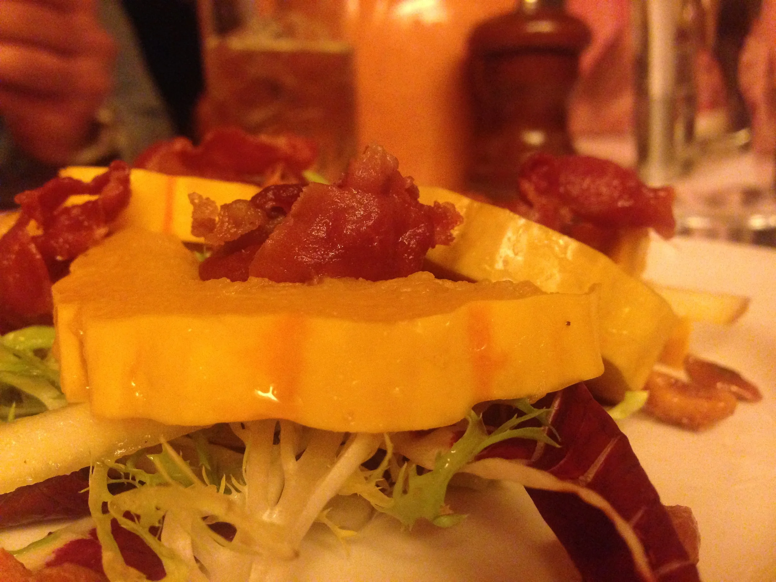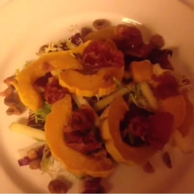 The Specials: Butternut Squash, Frisse, Crispy Pancetta, Lemon Vinaigrette. Pasta. Mushroom Ravioli, Poached Egg. #WhatsNewWednesday at Cherche Midi.